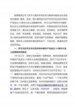 国有企业党史学习教育专题组织生活会班子对照检查材料