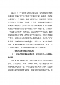 国有企业党委委员党史学习教育专题民主生活会个人对照检查材料