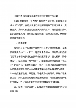 公司纪委2026年党风廉政建设和反腐败工作计划