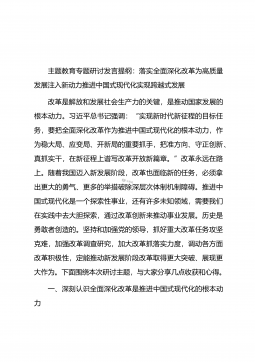 主题教育专题研讨发言提纲:落实全面深化改革 为高质量发展注入新动力 推进中国式现代化实现跨越式发展