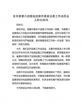 在市委第六巡察组巡察市委政法委工作动员会上的主持词