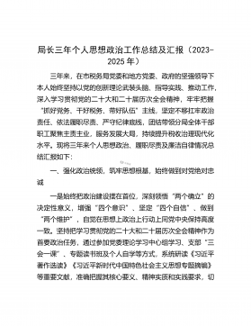 局长三年个人思想政治工作总结及汇报(2023-2025年)