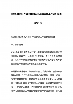XX集团2025年度党委书记抓基层党建工作述职报告(精品)3