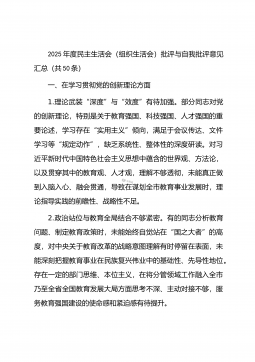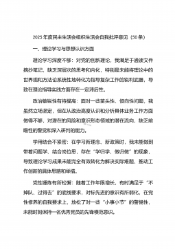 2025年度民主生活会组织生活会自我批评意见(50条)
