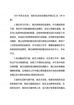 2025年民主生活、组织生活会自我批评意见汇总(共30条)