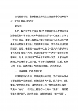 公司党委书记、董事长在主持民主生活会前中心组专题学习(扩大)会议上的讲话