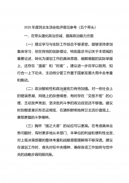 2025年度民主生活会批评意见参考(五个带头)