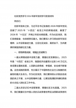 社区党员学习2026年新年贺词学习发言材料