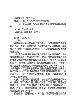 人民日报社副总编辑方江山:在“晋江经验”与习近平经济思想理论研讨会上的致辞+(20220819)