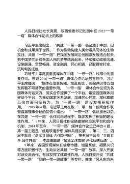 人民日报社社长庹震、陕西省委书记刘国中在2022“一带一路”媒体合作论坛上的致辞(20220810)