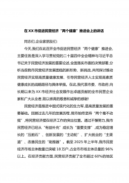 在XX市促进民营经济“两个健康”推进会上的讲话