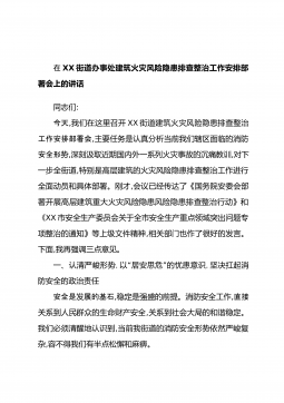 在XX街道办事处建筑火灾风险隐患排查整治工作安排部署会上的讲话VIP免费