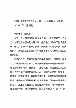 张家胜同志黄冈在市政协六届一次会议开幕会上的讲话