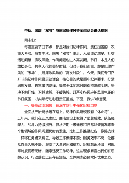 中秋、国庆“双节”节前纪律作风警示谈话会讲话提纲