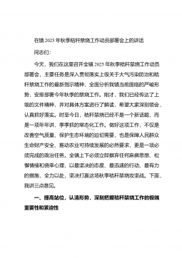 在镇2025年秋季秸秆禁烧工作动员部署会上的讲话