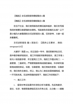 【精选】教师述职报告范文十篇【精选】教师述职报告范文十篇在学习、工作生活中,报告的适用范围越来越广泛,我们在写报告的时候要避免篇幅过长。相信很多朋友都对写报告感到非常苦恼吧,以下是小编精心整理的教师述职报告10篇,希望能够帮助到大家。教师述职报告篇1XX年我荣幸的被评为县首届骨干教师,这是各级领导对我工作的肯定与鼓励,我深知这既是一种荣誉,更是一种责任。于是,我努力做好各项工作,不辜负领导、同事、家长、学生对我的厚望。【更多公文素材,微信:wengaopai123】回首两年多来的工作,我觉得既忙碌又充实。现对自己的工作进行一个总结和反思。一、在不断学习和锻炼中充实自己当今的社会是学习的社会,身...
