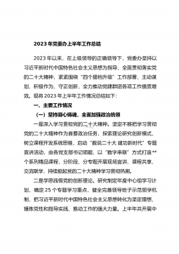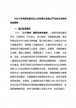 2023年党委党组书记上半年履行全面从严治党主体责任总结报告一、履行职责情况(一)“三个坚持”履职尽责作表率。一是抓好政治建设学习,巩固深化“不忘初心、牢记使命”主题教育成果。落实好理论学习中心组学习等制度,至少每月参加1次理论学习中心组集体学习,每季度1次集体研讨,认真记好学习笔记,对规定的学习篇目做到了认真学、仔细记、反复想,不断增强学习效果。按照上级要求,部署开展了“大学习、大调研、大改进”活动,在完成好各项学习任务的同时,围绕政策落实等深入基层和企业开展了调研活动,撰写形成调研报告。二是抓好学习重点。把学习贯彻习近平新时代中国特色社会主义思想和党的XX大会议精神作为首要政治任务,学党章...