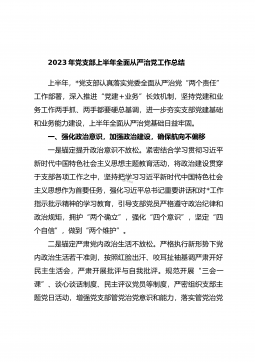 2023年党委党组书记上半年履行全面从严治党主体责任总结报告(1)