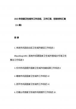 (11篇)2023年创建卫生城市工作总结、工作汇报、经验材料汇编