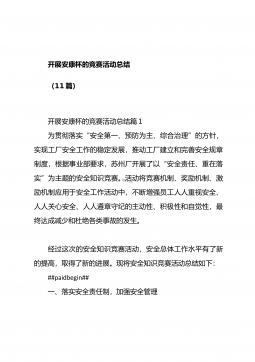 2023年创建卫生城市工作总结、工作汇报、经验材料汇编(11篇)目录1.来宾市巩固自治区卫生城市建设工作综述1##paidbegin##2.陇南市创建国家卫生城市暨城乡环境卫生整治工作综述43.忻州市巩固提升国家卫生城市创建成果工作综述84.赣南市巩固国家卫生城市工作综述105.四平市巩固国家卫生城市工作综述146.石嘴山市国家卫生城市巩固提升工作综述187.永州市巩固国家卫生城市综述218.珲春市巩固国家卫生城市创建成果工作综述249.十堰市巩固国家卫生城市创建成果工作综述2610.南宁市推进国家卫生城市创建工作综述2911.鹤壁市巩固国家卫生城市创建成果工作综述32“创卫”动起来城市美如画...
