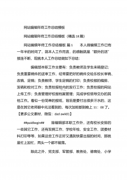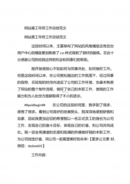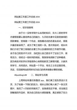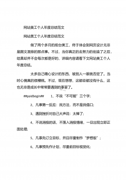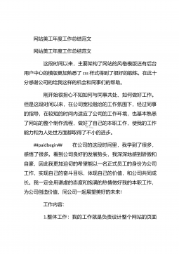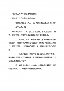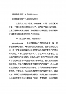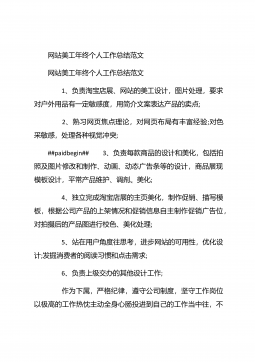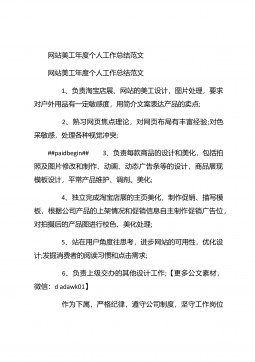 网站美工年终个人工作总结20XX网站美工年终个人工作总结20XX 这是我加入这个温馨大家庭的第二个月,这个月相对于第一个月来说肯定没那么轻松了,因为除了做自己的官网,这个月还开始做淘宝商城,工作质量与效率的要求也有所提升了,请看下文网站美工年终个人工作总结。 一、努力脱离模仿,做原创设计:##paidbegin## 自从接触网站广告图制作以来,我一直都是跟着思想走的,每天他安排的某些任务,我都会按时的完成,每个任务都是跟着想法和他想要的风格再凭着自己的感觉来完成的,本来以为这样就完事了,自己从未认真思考过,这样做的风格适合吗?做设计的我怎么能没有自己的想法呢?但是有自己的想法也不一定能够...