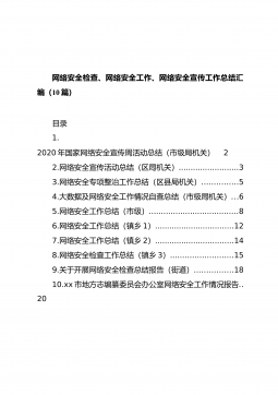 网络安全检查、网络安全工作、网络安全宣传工作总结汇编10篇1万字