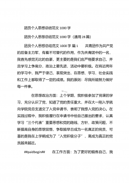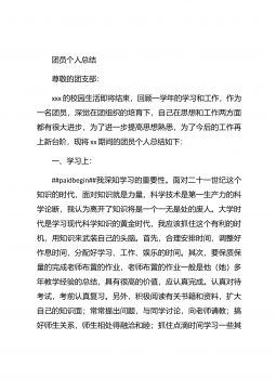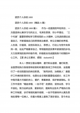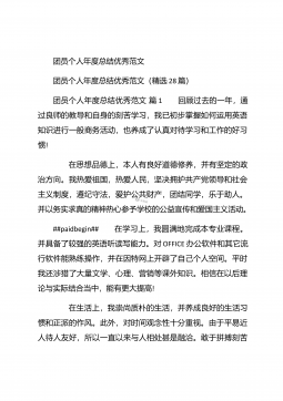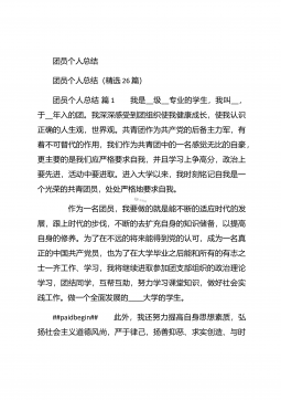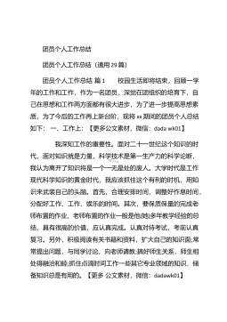团员个人工作总结团员个人工作总结(通用29篇)团员个人工作总结篇1 校园生活即将结束,回顾一学年的工作和工作,作为一名团员,深觉在团组织的培育下,自己在思想和工作两方面都有很大进步,为了进一步提高思想素质,为了今后的工作再上新台阶,现将xx期间的团员个人总结如下:一、工作上:【更多公文素材,微信:dadawk01】 我深知工作的重要性。面对二十一世纪这个知识的时代,面对知识就是力量,科学技术是第一生产力的科学论断,我认为离开了知识将是一个一无是处的废人。大学时代是工作现代科学知识的黄金时代,我应该抓住这个有利的时机,用知识来武装自己的头脑。首先,合理安排时间,调整好作息时间,分配好工作、工...