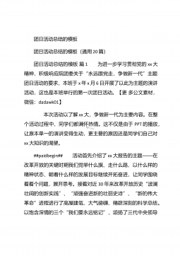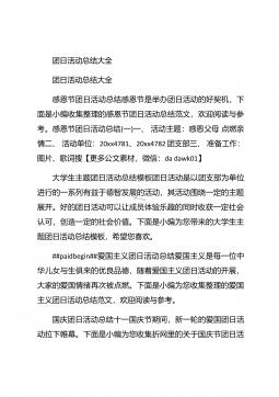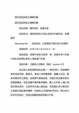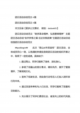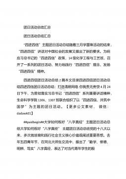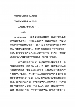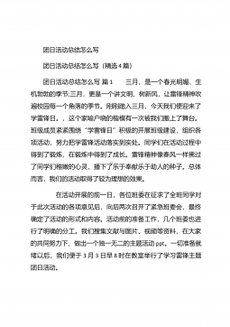 团日活动总结怎么写团日活动总结怎么写(精选4篇)团日活动总结怎么写篇1 三月,是一个春光明媚、生机勃勃的季节;三月,更是一个讲文明、树新风,让雷锋精神吹遍校园每一个角落的季节。刚刚踏入三月,今天我们便迎来了学雷锋日。,这个家喻户晓的楷模有一次被我们搬上了舞台。班级成员紧紧围绕“学雷锋日”积极的开展班级建设,组织各项活动,努力把学雷锋活动落实到实处。同学们在活动过程中得到了锻炼,在锻炼中得到了成长。雷锋精神像春风一样拂过了同学们稚嫩的心灵,播下了乐于奉献乐于助人的种子。总体而言,我们的活动取得了较为理想的效果。 在活动开展的前一日,各位班委在征求了全班同学对于此次活动的各项意见后,向后两次召...