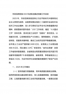 街道党工委2025年度党建工作总结2025年是全面贯彻落实党的二十大精神的关键之年,也是深入学习党的二十届四中全会精神的开局之年。一年来,*路街道党工委在*市委的坚强领导下,始终坚持以习近平新时代中国特色社会主义思想为指导,紧紧围绕“凝心聚力强党建,砥砺奋进促发展”的工作主线,全面加强党的领导和党的建设,将党建工作与街道中心任务深度融合,为推动辖区高质量发展提供了坚强有力的政治保障和组织保障。现将全年工作总结如下。一、强化思想政治引领,筑牢理论武装根基街道党工委始终将党的政治建设摆在首位,坚持不懈用党的创新理论凝心铸魂,引导广大党员干部深刻领悟“两个确立”的决定性意义,增强“四个意识”、坚定“...