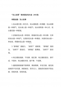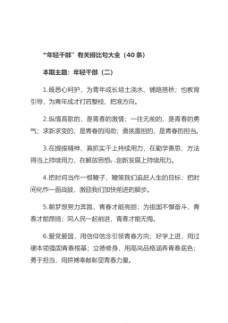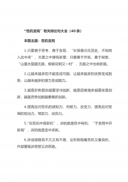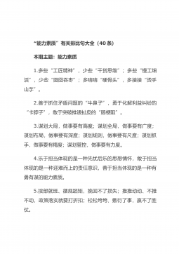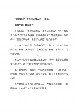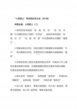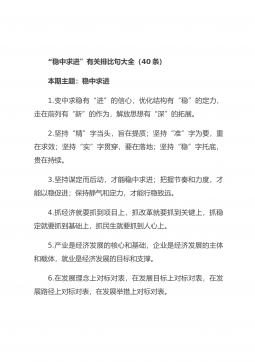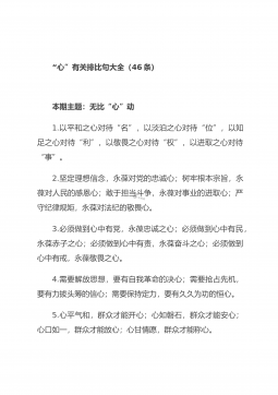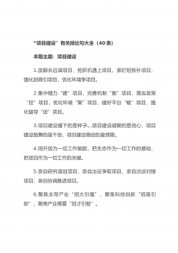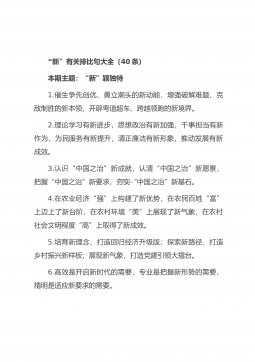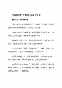 “新发展理念”有关排比句大全(40条)本期主题:新发展理念1.打造高新产业发展的示范区、集聚区、引领区,当好高质量跨越式发展的主力军、生力军、领跑者。2.在发展理念上对标对表,在发展目标上对标对表,在发展路径上对标对表,在发展举措上对标对表。3.创新成为第一动力,协调成为内生特点,绿色成为普遍形态,开放成为必由之路,共享成为根本目的。4.坚持“聚焦产业链、培育新动能”,坚持“统筹产学研、联通企校社”,坚持“融入新通道、共筑大平台”。5.转化为战略行动,转化为发展规划,转化为工作方案,转化为合作项目,转化为具体事项,转化为长效机制。6.新目标新定位振奋人心、催人奋进,新目标新定位鼓舞信心、坚定决...