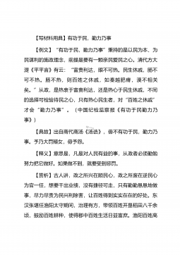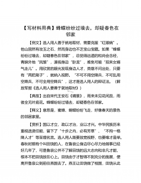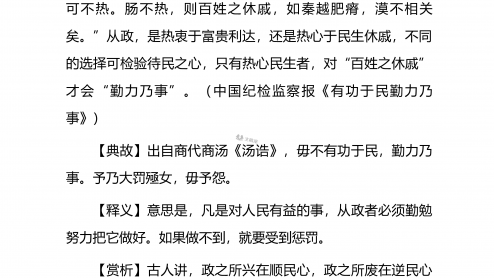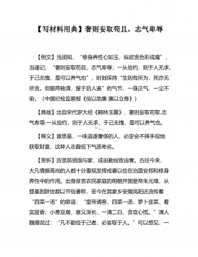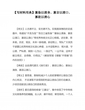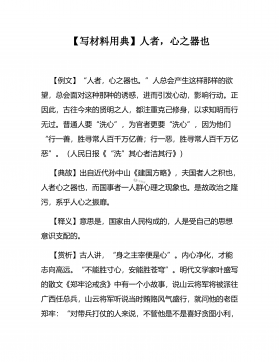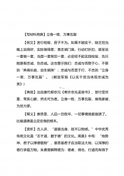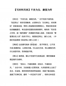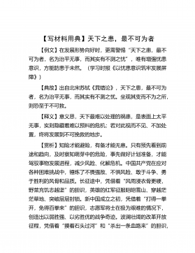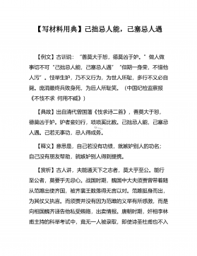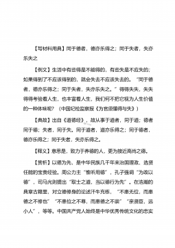 【写材料用典】同于德者,德亦乐得之;同于失者,失亦乐失之【例文】生活中有些得是不能得的,有些失是不应失的;如果得到了不应该得到的,就会失去不应该失去的。“同于德者,德亦乐得之;同于失者,失亦乐失之。”得得失失,失失得得考验着人生,也丰富着人生,我们何不把它视为人生价值的一种体味呢?(中国纪检监察报《为官须懂得与失》)【典故】出自《道德经》,故从事于道者,同于道;德者同于德;失者,同于失。同于道者,道亦乐得之;同于德者,德亦乐得之;同于失者,失亦乐得之。【释义】意思是,致力于养德的人,更为接近高尚之德。【赏析】以德为先,是中华民族几千年来治国理政、选贤任能的宝贵经验。周公力主“惟听用德”,孔子强...