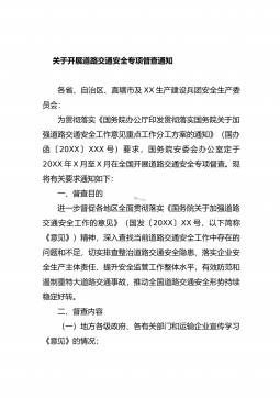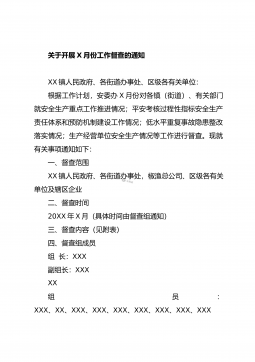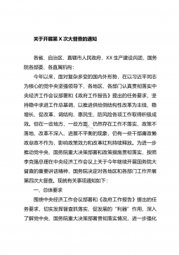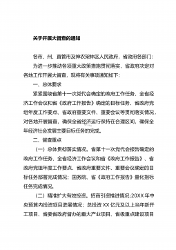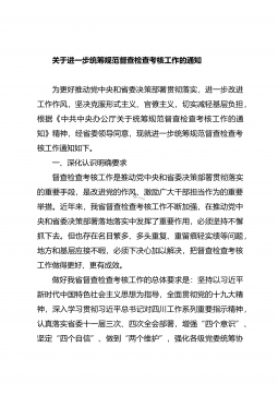 XX县关于统筹规范20XX年全县政府督查检查考核工作的通知各乡镇人民政府,自治县人民政府各组成部门、各直属机构:根据《自治区党委办公厅自治区人民政府办公厅关于统筹规范全区督查检查考核工作的通知》(桂办发〔20XX〕XX号)和《XX壮族自治区人民政府办公厅关于统筹规范20XX年全区政府督查检查考核工作的通知》(桂政办发〔20XX〕XX号)文件精神,为更好地推动XX市委、市人民政府以及自治县党委、自治县人民政府重大决策部署贯彻落实,进一步改进工作作风,坚决克服形式主义、官僚主义,经自治县人民政府同意,现就统筹规范20XX年全县政府督查检查考核工作通知如下。一、提高政治站位,深刻认识做好统筹规范全县...