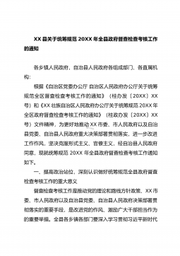 XX县关于统筹规范20XX年全县政府督查检查考核工作的通知