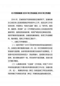 XX市财政监督20XX年工作总结及20XX年工作谋划