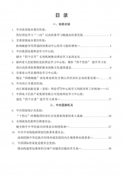 目录一、经验总结1.中共张家港市委宣传部:答好理论学习“三问”以高质量学习赋能高质量发展..................12.甘肃省陇南市委宣传部:机制赋能学用贯通持续推动中心组学习提质增效…....................43.中信集团党委理论学习中心组:健全“四个以学”长效机制推动理论学习走深走实....................64.陕西省人民检察院党组理论学习中心组:聚焦“四个坚持”提升学习实效以高质效检察履职服务保障文化强国建设..........................95.甘肃省山丹县委理论学习中心组:锚定“四维赋能”深化理论转化引领山丹经济社会高质量发...