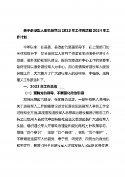 关于退役军人事务局党组2023年工作总结和2024年工作计划