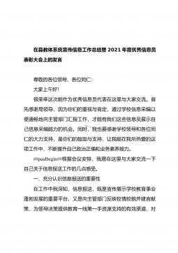 在县教体系统宣传信息工作总结暨2021年度优秀信息员表彰大会上的发言