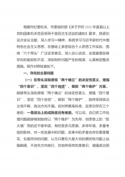 某消防总队纪委书记2022年度民主生活会对照检查材料(六个带头)
