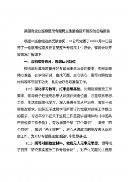 20220819某国有企业巡察整改专题民主生活会召开情况的总结报告