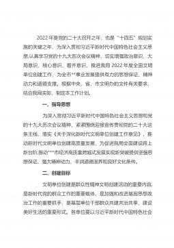 2022年是党的二十大召开之年,也是“十四五”规划实施的关键之年,为深入贯彻习近平新时代中国特色社会主义思想,认真学习党的十九大历次会议精神,切实增强政治意识、大局意识、核心意识、看齐意识,推进我局2022年度全国文明单位创建工作,为全市**事业发展提供有力的思想保证、精神动力和道德支撑。根据中央、省、市文明办的文件有关要求,结合我局实际,制定本工作计划。一、指导思想为深入贯彻习近平新时代中国特色社会主义思想和党的十九大历次会议精神,紧紧围绕迎接宣传贯彻党的二十大这条主线,落实《关于深化新时代文明单位创建工作意见》,推动新时代文明单位创建高质量发展,为促进我局...