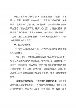 根据上级有关《通知》要求,我紧紧围绕“学党史、悟思想、办实事、开新局”这一主题,认真贯彻“学史明理、学史增信、学史崇德、学史力行”根本要求,切实对照此次专题组织生活会“精心组织学习、开展谈心谈话、认真盘点检视、开展批评和自我批评、扎实抓好整改”各项安排,重点围绕“4个方面”进行全面盘点和检视,现将有关情况汇报如下,不妥之处恳请同志们批评指正:一、盘点检视情况(一)学习总书记在庆祝中国共产大会上的重要讲话精神情况和心得体会7月1日上午,我准时认真收听收看了庆祝大会实况直播,总书记讲话通篇没有华丽的辞藻、华美的语句,通俗易懂、朴实无华,娓娓道来、感人至深,讲述的是我们党百年筚路蓝缕的艰难探索、奋斗...