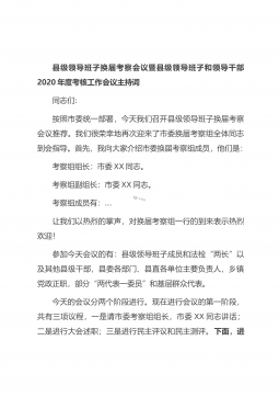 县级领导班子换届考察会议暨县级领导班子和领导干部2020年度考核工作会议主持词