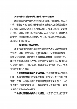 2021082103关于我市优化营商环境工作情况的调研报告