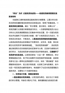 2021081414“积分”为尺、丈量党员先进性——街道党员教育管理交流发言材料