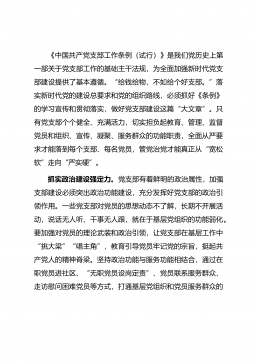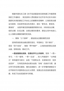 根据市直机关工委《关于促进基层党支部党建工作提质增效的工作通知》,我支部深入贯彻落实习近平总书记在中央和国家机关党的建设工作会议上的重要讲话精神,以党的政治建设为统领,切实树牢政治机关意识,紧扣“更生动、更亲民、更高效”,全面开展支部党建提质增效行动,对标政治过硬、组织过硬、队伍过硬、业绩过硬目标要求,建设让党中央放心、让人民群众满意的模范党支部。一、聚焦“三个表率”,建设政治过硬的模范支部坚持把党的政治建设摆在首位,牢固树立“四个意识”、坚定“四个自信”、做到“两个维护”,以党的创新理论武装头脑、指导实践、推动工作。一是加强理论武装,在理论学习上作表率。坚持“一周一学习、一月一辅导、一季一交...