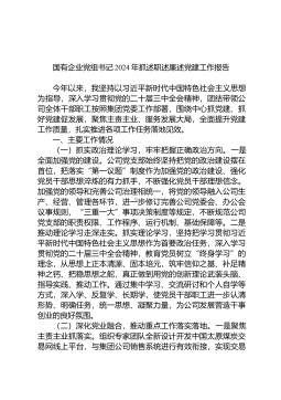 单位(企业)党委关于落实2024年意识形态工作情况的报告意识形态工作是为国家立心、为民族立魂的工作。2024年,**公司党委在**上级单位(公司)党委的坚强领导下,深入贯彻落实党的二十大和二十届二中、三中全会精神,紧紧围绕党纪学习教育、学习宣传贯彻党的二十届三中全会精神等重点工作,牢牢把握意识形态工作的正确方向,不断增强意识形态工作的积极性、主动性和前瞻性,切实做到守土有责、守土尽责、守土负责。现将有关情况总结如下:第一部分:2024年意识形态工作开展情况(一)增强理论学习,提升政治意识班子领学,带动学习走深走实。抓住领导干部这个“关键少数”,发挥好“头雁效应”,在深学细悟中增强“两个确立”的...