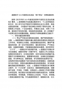 市直单位领导班子成员2024年度专题民主生活会对照检查材料(四个带头) (1)