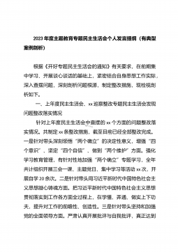 2023年度主题教育专题民主生活会个人发言提纲(有典型案例剖析)