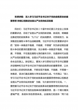 党课讲稿:深入学习习近平总书记关于党的自我革命的重要思想 持续以恒推进全面从严治党向纵深发展