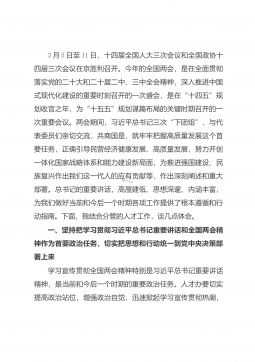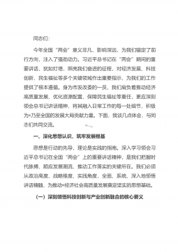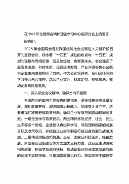 在检察院理论学习中心组专题学习习近平总书记在2025年全国“两会”上的重要讲话精神研讨交流会上的发言同志们:在全国“两会”召开期间,习近平总书记在会上的重要讲话,高屋建瓴、思想深邃,为我们各项工作指明了方向,提供了根本遵循。身为XX市人民检察院的一员,深入学习领会总书记讲话精神,是我们当前和今后一个时期的重要政治任务。今天,我们齐聚于此,开展专题研讨交流,就是要将总书记的讲话精神与检察工作实际紧密结合,进一步统一思想、凝聚共识,为推动XX检察事业高质量发展注入强大动力。下面,我谈几点体会。一、深化思想认识,把握核心要义(一)深刻领悟发展新质生产力的检察担当习近平总书记指出,科技创新和产业创新是...